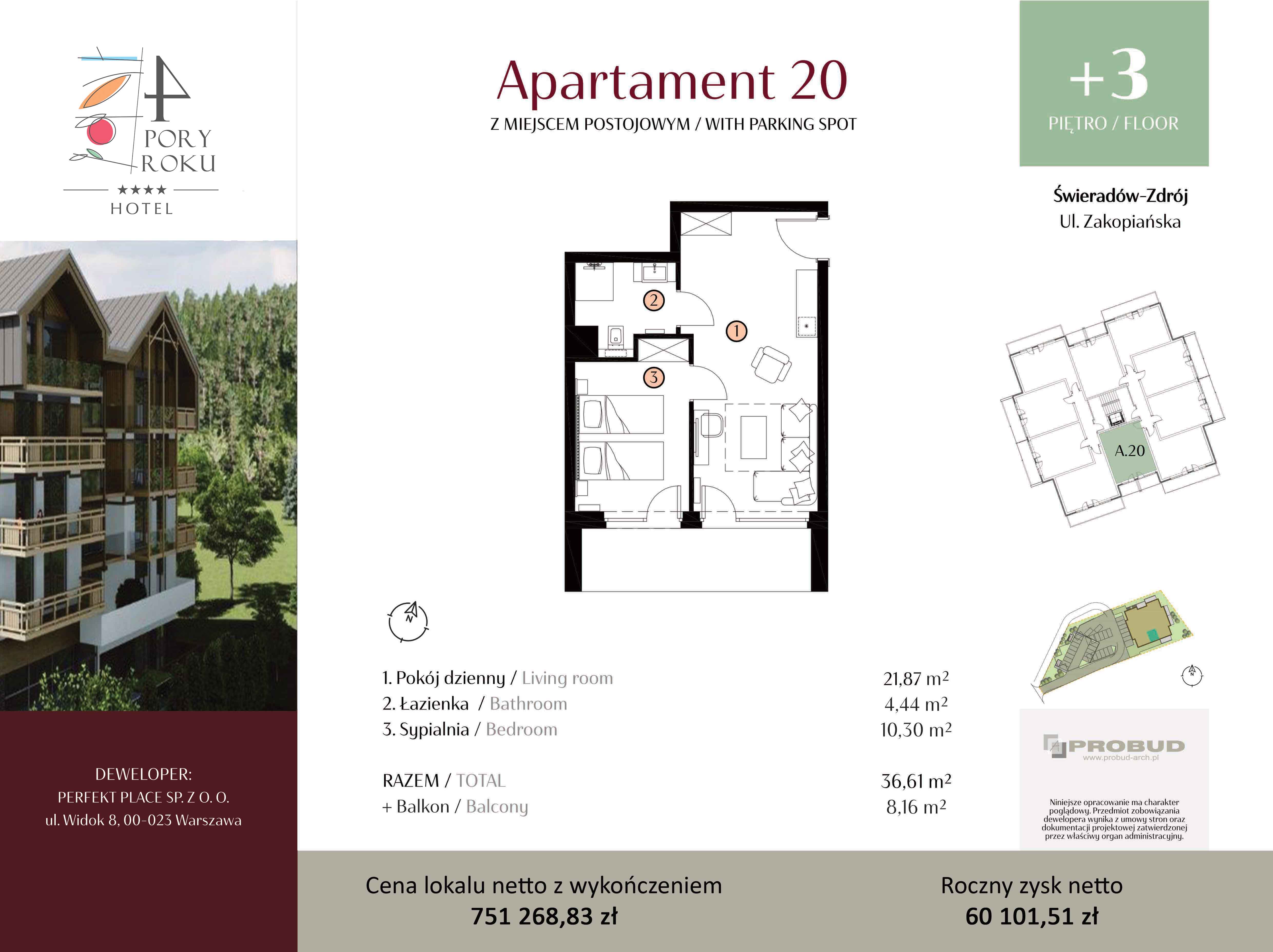 Kalkulacje potencjalnego zarobku oraz korzyści i ryzyka związane z inwestycją i najmem są przedstawiane w biurze sprzedaży i omawiane indywidualnie przed zawarciem umowy.